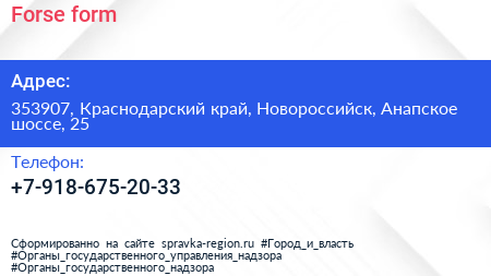 Forse form по адресу 353907, Краснодарский край, Новороссийск, Анапское шоссе, 25 в дальнейшем Организация, размещена в следующих категориях: