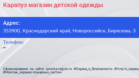Карапуз, магазин детской одежды по адресу 353900, Краснодарский край, Новороссийск, Бирюзова, 3 в дальнейшем Организация, размещена в следующих категориях:
