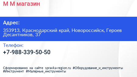 M & M, магазин по адресу 353913, Краснодарский край, Новороссийск, Героев Десантников, 37 в дальнейшем Организация, размещена в следующих категориях: