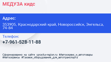 МЕДУЗА кидс по адресу 353905, Краснодарский край, Новороссийск, Энгельса, 74-84 в дальнейшем Организация, размещена в следующих категориях: