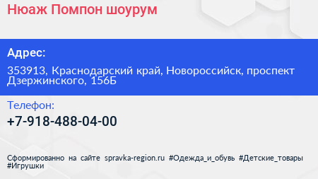 Нюаж Помпон, шоурум по адресу 353913, Краснодарский край, Новороссийск, проспект Дзержинского, 156Б в дальнейшем Организация, размещена в следующих категориях: