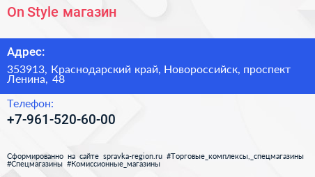 On Style, магазин по адресу 353913, Краснодарский край, Новороссийск, проспект Ленина, 48 в дальнейшем Организация, размещена в следующих категориях: