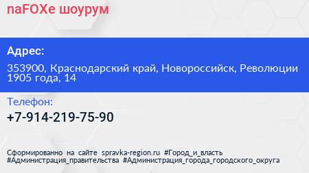 naFOXe, шоурум по адресу 353900, Краснодарский край, Новороссийск, Революции 1905 года, 14 в дальнейшем Организация, размещена в следующих категориях: