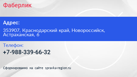 Фаберлик по адресу 353907, Краснодарский край, Новороссийск, Астраханская, 6 в дальнейшем Организация, размещена в следующих категориях: