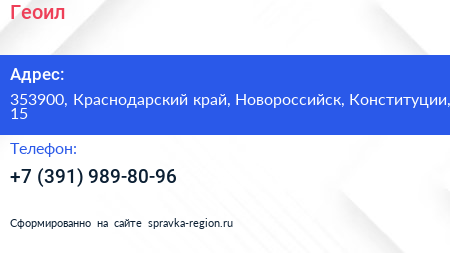 Геоил по адресу 353900, Краснодарский край, Новороссийск, Конституции, 15 в дальнейшем Организация, размещена в следующих категориях: