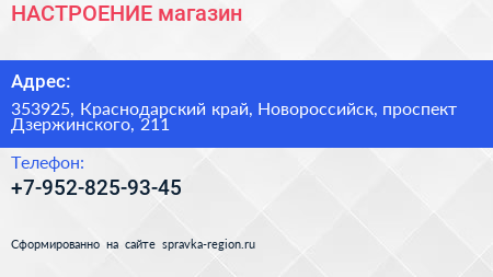 НАСТРОЕНИЕ, магазин по адресу 353925, Краснодарский край, Новороссийск, проспект Дзержинского, 211 в дальнейшем Организация, размещена в следующих категориях: