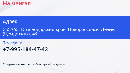 На мангал по адресу 353960, Краснодарский край, Новороссийск, Ленина (Цемдолина), 49 в дальнейшем Организация, размещена в следующих категориях: