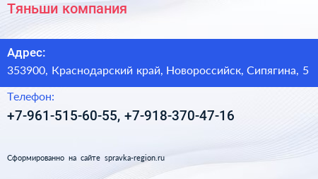 Тяньши, компания по адресу 353900, Краснодарский край, Новороссийск, Сипягина, 5 в дальнейшем Организация, размещена в следующих категориях: