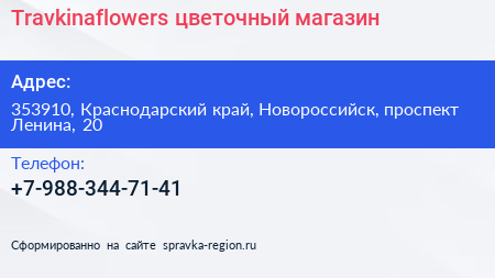 Travkinaflowers, цветочный магазин по адресу 353910, Краснодарский край, Новороссийск, проспект Ленина, 20 в дальнейшем Организация, размещена в следующих категориях:
