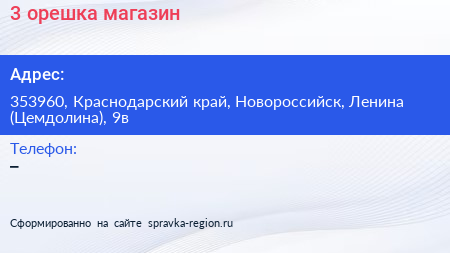 3 орешка, магазин по адресу 353960, Краснодарский край, Новороссийск, Ленина (Цемдолина), 9в в дальнейшем Организация, размещена в следующих категориях: