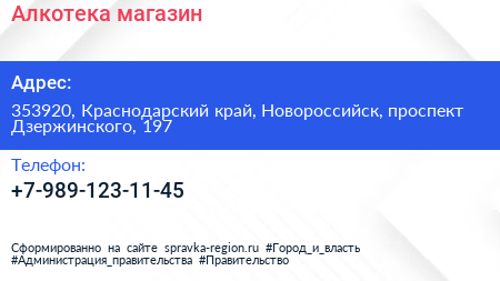 Алкотека, магазин по адресу 353920, Краснодарский край, Новороссийск, проспект Дзержинского, 197 в дальнейшем Организация, размещена в следующих категориях: