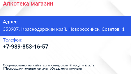Алкотека, магазин по адресу 353907, Краснодарский край, Новороссийск, Советов, 1 в дальнейшем Организация, размещена в следующих категориях: