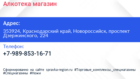 Алкотека, магазин по адресу 353924, Краснодарский край, Новороссийск, проспект Дзержинского, 224 в дальнейшем Организация, размещена в следующих категориях: