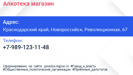 Алкотека, магазин по адресу Краснодарский край, Новороссийск, Революционная, 67 в дальнейшем Организация, размещена в следующих категориях: