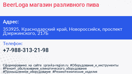 BeerLoga, магазин разливного пива по адресу 353925, Краснодарский край, Новороссийск, проспект Дзержинского, 217Б в дальнейшем Организация, размещена в следующих категориях: