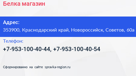 Белка, магазин по адресу 353900, Краснодарский край, Новороссийск, Советов, 60а в дальнейшем Организация, размещена в следующих категориях: