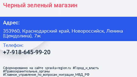 Черный-зеленый, магазин по адресу 353960, Краснодарский край, Новороссийск, Ленина (Цемдолина), 7ж в дальнейшем Организация, размещена в следующих категориях: