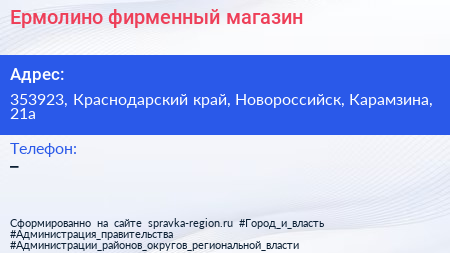 Ермолино, фирменный магазин по адресу 353923, Краснодарский край, Новороссийск, Карамзина, 21а в дальнейшем Организация, размещена в следующих категориях:
