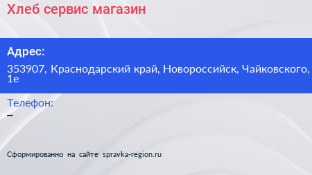 Хлеб-сервис, магазин по адресу 353907, Краснодарский край, Новороссийск, Чайковского, 1е в дальнейшем Организация, размещена в следующих категориях: