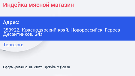 Индейка, мясной магазин по адресу 353922, Краснодарский край, Новороссийск, Героев Десантников, 24а в дальнейшем Организация, размещена в следующих категориях: