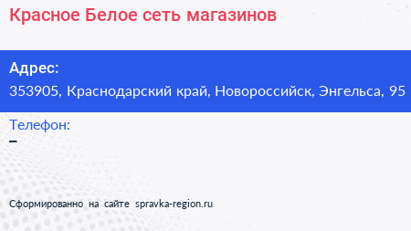 Красное & Белое, сеть магазинов по адресу 353905, Краснодарский край, Новороссийск, Энгельса, 95 в дальнейшем Организация, размещена в следующих категориях: