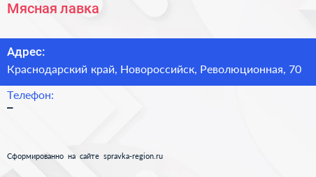 Мясная лавка по адресу Краснодарский край, Новороссийск, Революционная, 70 в дальнейшем Организация, размещена в следующих категориях:
