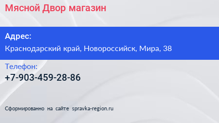 Мясной Двор, магазин по адресу Краснодарский край, Новороссийск, Мира, 38 в дальнейшем Организация, размещена в следующих категориях: