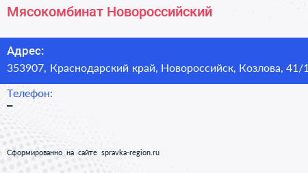 Мясокомбинат Новороссийский по адресу 353907, Краснодарский край, Новороссийск, Козлова, 41/1 в дальнейшем Организация, размещена в следующих категориях: