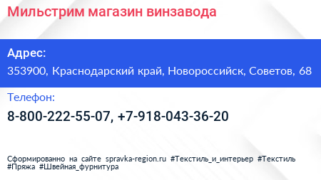 Мильстрим, магазин винзавода по адресу 353900, Краснодарский край, Новороссийск, Советов, 68 в дальнейшем Организация, размещена в следующих категориях:
