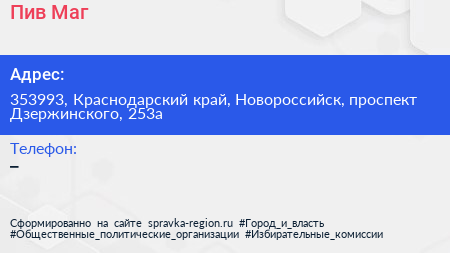 Пив Маг по адресу 353993, Краснодарский край, Новороссийск, проспект Дзержинского, 253а в дальнейшем Организация, размещена в следующих категориях: