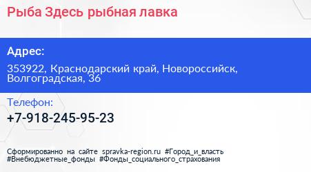Рыба Здесь, рыбная лавка по адресу 353922, Краснодарский край, Новороссийск, Волгоградская, 36 в дальнейшем Организация, размещена в следующих категориях: