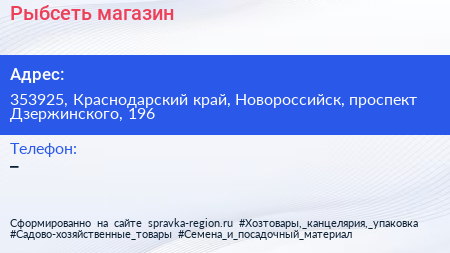 Рыбсеть, магазин по адресу 353925, Краснодарский край, Новороссийск, проспект Дзержинского, 196 в дальнейшем Организация, размещена в следующих категориях: