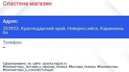 Сластена, магазин по адресу 353923, Краснодарский край, Новороссийск, Карамзина, 6а в дальнейшем Организация, размещена в следующих категориях: