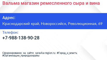Вальма, магазин ремесленного сыра и вина по адресу Краснодарский край, Новороссийск, Революционная, 69 в дальнейшем Организация, размещена в следующих категориях: