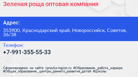 Зеленая роща, оптовая компания по адресу 353900, Краснодарский край, Новороссийск, Советов, 36/38 в дальнейшем Организация, размещена в следующих категориях: