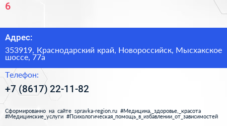 №6 по адресу 353919, Краснодарский край, Новороссийск, Мысхакское шоссе, 77а в дальнейшем Организация, размещена в следующих категориях: