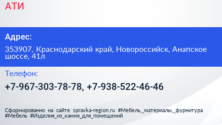 АТИ по адресу 353907, Краснодарский край, Новороссийск, Анапское шоссе, 41л в дальнейшем Организация, размещена в следующих категориях: