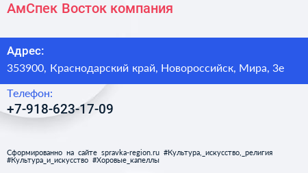 АмСпек Восток, компания по адресу 353900, Краснодарский край, Новороссийск, Мира, 3е в дальнейшем Организация, размещена в следующих категориях: