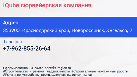 IQube, сюрвейерская компания по адресу 353900, Краснодарский край, Новороссийск, Энгельса, 7 в дальнейшем Организация, размещена в следующих категориях: