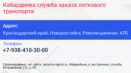 Кабардинка, служба заказа легкового транспорта по адресу Краснодарский край, Новороссийск, Революционная, 67Б в дальнейшем Организация, размещена в следующих категориях: