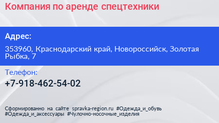 Компания по аренде спецтехники по адресу 353960, Краснодарский край, Новороссийск, Золотая Рыбка, 7 в дальнейшем Организация, размещена в следующих категориях: