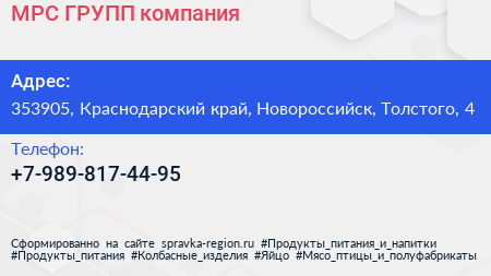 МРС ГРУПП, компания по адресу 353905, Краснодарский край, Новороссийск, Толстого, 4 в дальнейшем Организация, размещена в следующих категориях:
