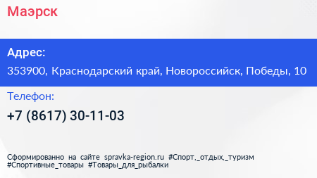 Маэрск по адресу 353900, Краснодарский край, Новороссийск, Победы, 10 в дальнейшем Организация, размещена в следующих категориях:
