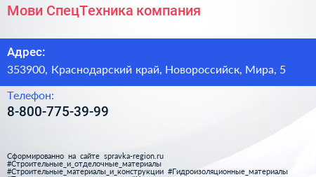 Мови-СпецТехника, компания по адресу 353900, Краснодарский край, Новороссийск, Мира, 5 в дальнейшем Организация, размещена в следующих категориях:
