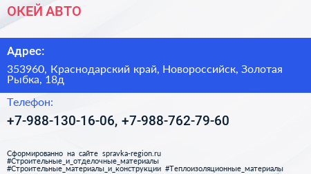 ОКЕЙ АВТО по адресу 353960, Краснодарский край, Новороссийск, Золотая Рыбка, 18д в дальнейшем Организация, размещена в следующих категориях: