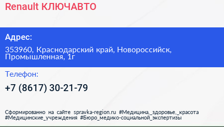 Renault КЛЮЧАВТО по адресу 353960, Краснодарский край, Новороссийск, Промышленная, 1г в дальнейшем Организация, размещена в следующих категориях: