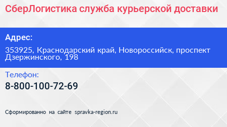 СберЛогистика, служба курьерской доставки по адресу 353925, Краснодарский край, Новороссийск, проспект Дзержинского, 198 в дальнейшем Организация, размещена в следующих категориях: