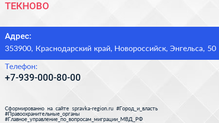 ТЕКНОВО по адресу 353900, Краснодарский край, Новороссийск, Энгельса, 50 в дальнейшем Организация, размещена в следующих категориях: