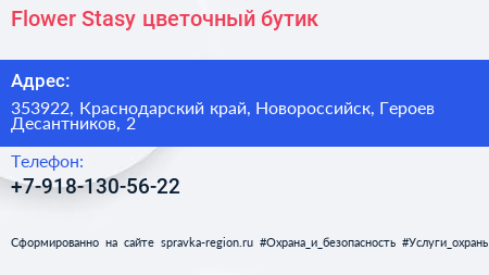 Flower Stasy, цветочный бутик по адресу 353922, Краснодарский край, Новороссийск, Героев Десантников, 2 в дальнейшем Организация, размещена в следующих категориях: