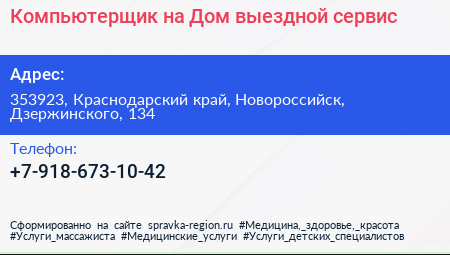 Компьютерщик на Дом, выездной сервис по адресу 353923, Краснодарский край, Новороссийск, Дзержинского, 134 в дальнейшем Организация, размещена в следующих категориях: